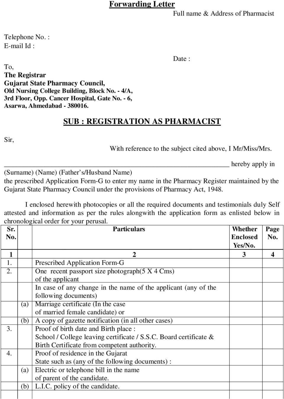 Form "G" Register